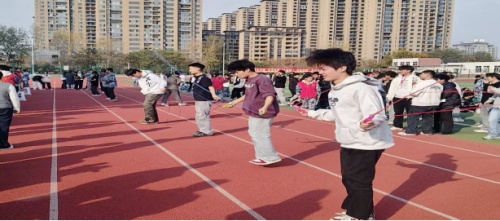 如果说个人赛是能力的展现,那么团体跳大绳则是团队凝聚力的完美诠释。长绳在空中划出优美的弧线,队员们看准时机,鱼贯而入,配合默契,起跳、落地,动作连贯,行云流水。摇绳的师生节奏稳健,跳跃的队伍步伐统一。偶尔有人失误,换来的是队友鼓励的微笑和及时的调整。场上紧张有序,场下助威声震天。这一刻,师生的心紧紧连在一起,为了共同的目标奋力跳跃,将团结协作的精神体现得淋漓尽致。