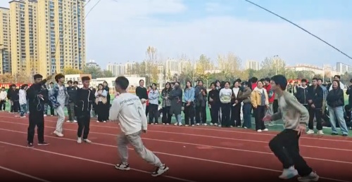 最引人注目的当属花样赛环节。这里不仅是技巧的比拼,更是创意与想象的舞台。交叉跳、双摇、挽花等高难度动作令人目不暇接,引来阵阵惊呼和掌声。他们用高难度的姿势,完美展示了精湛的技巧,展现了师生无限的创造力与青春活力。整场联谊赛始终洋溢着欢声笑语,加油声、呐喊声、欢呼声此起彼伏。